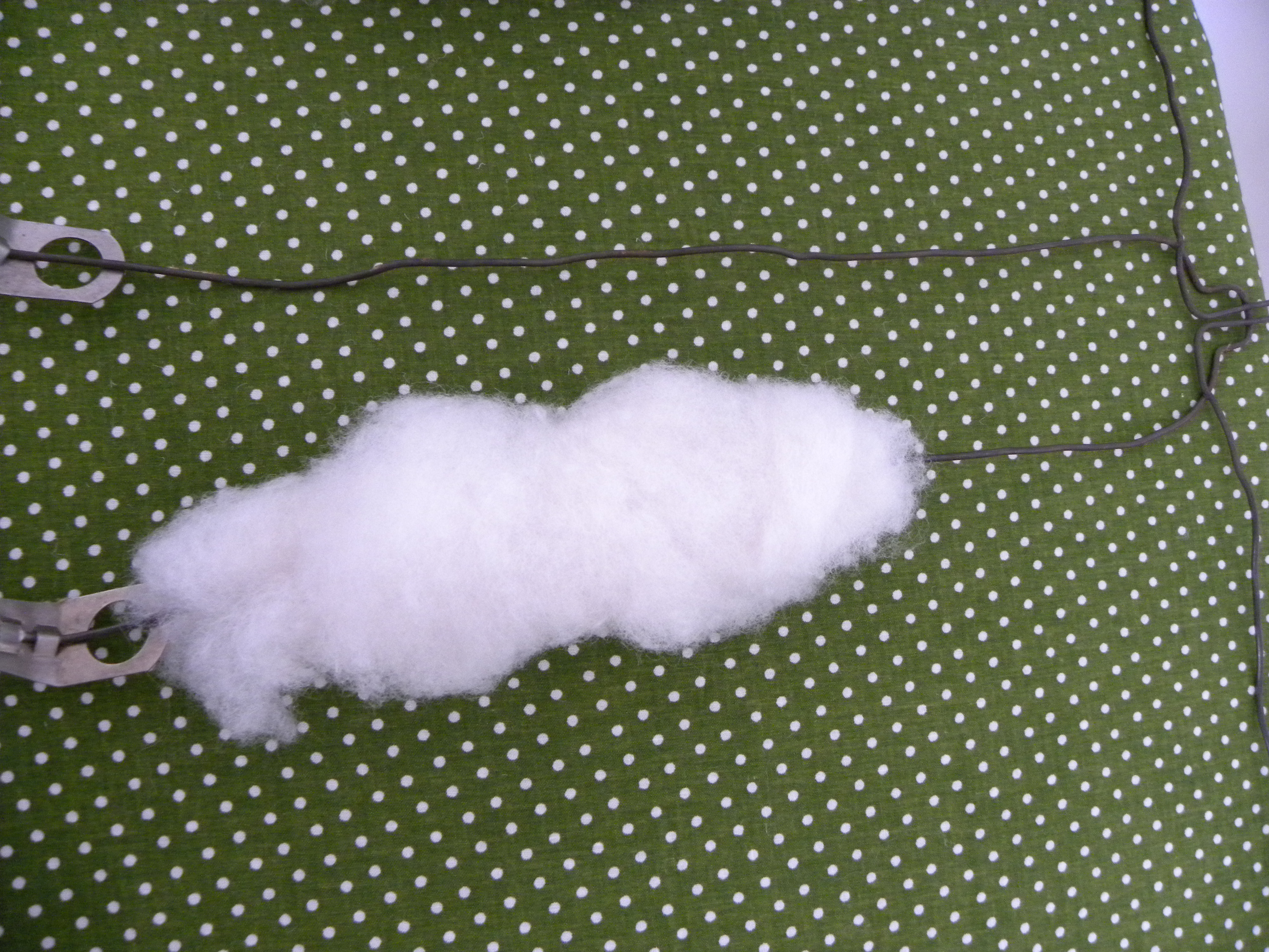 Wrapping some fiberfill around each leg wire (only showing one leg here) This will compact pretty quickly inside the leg.