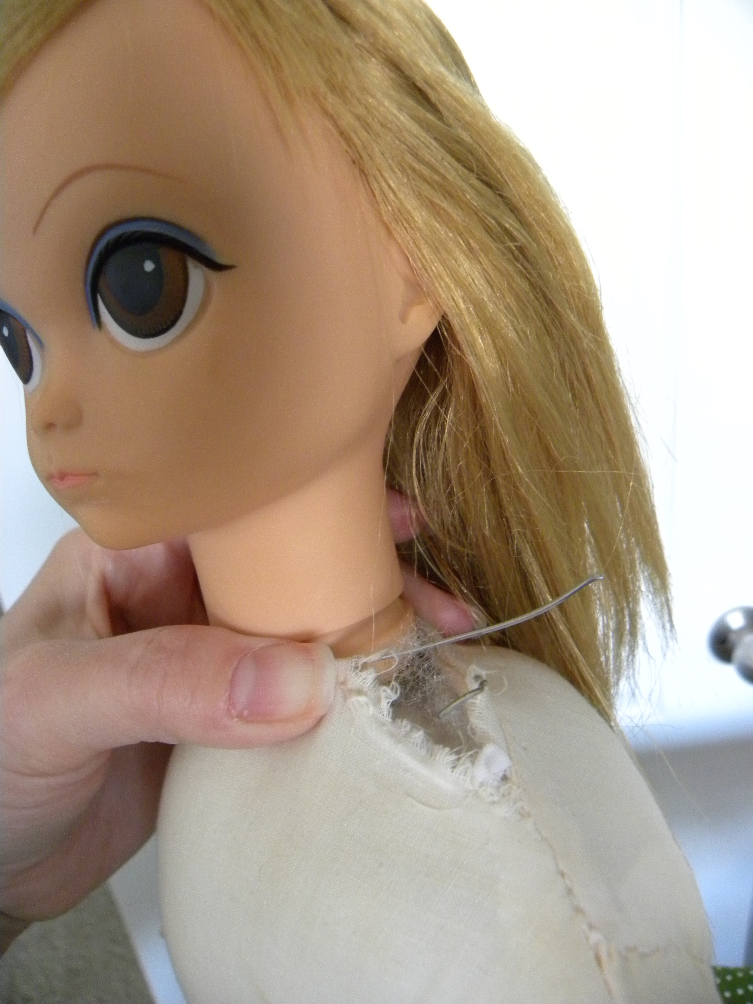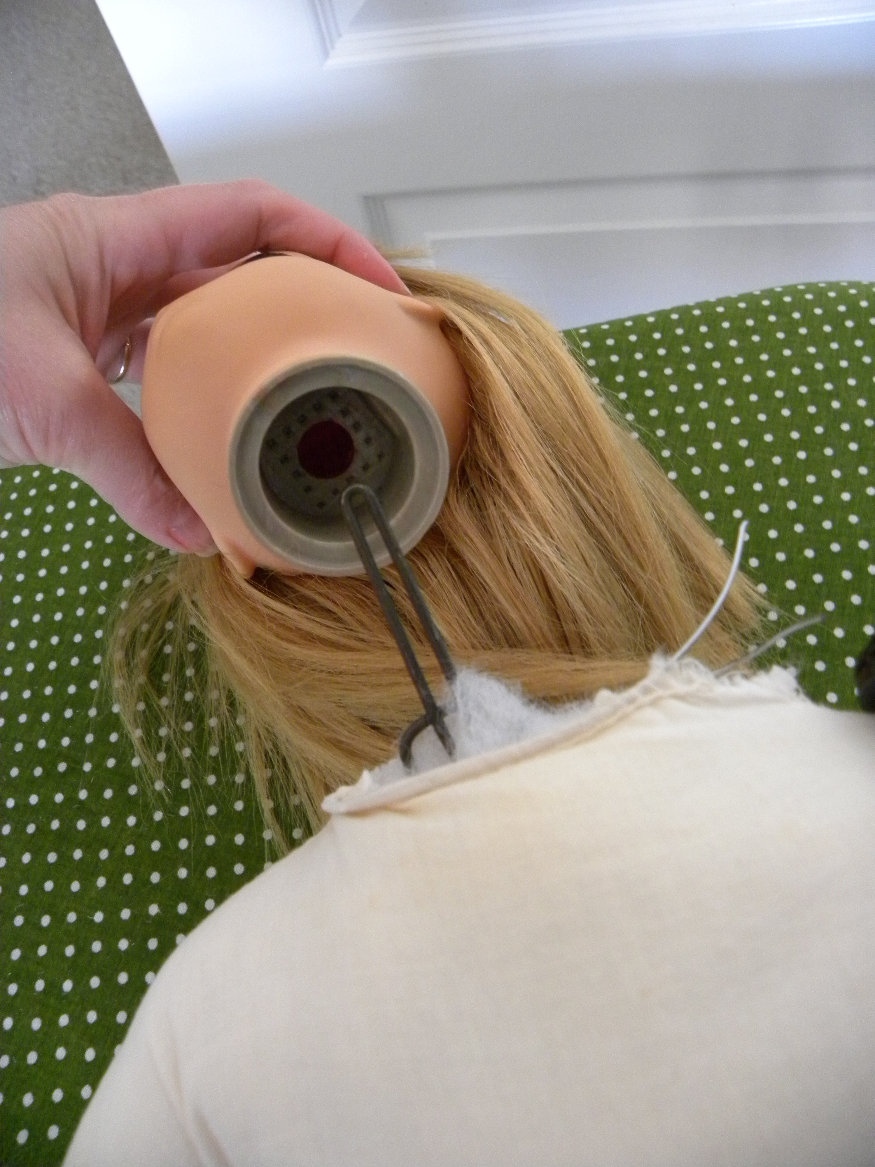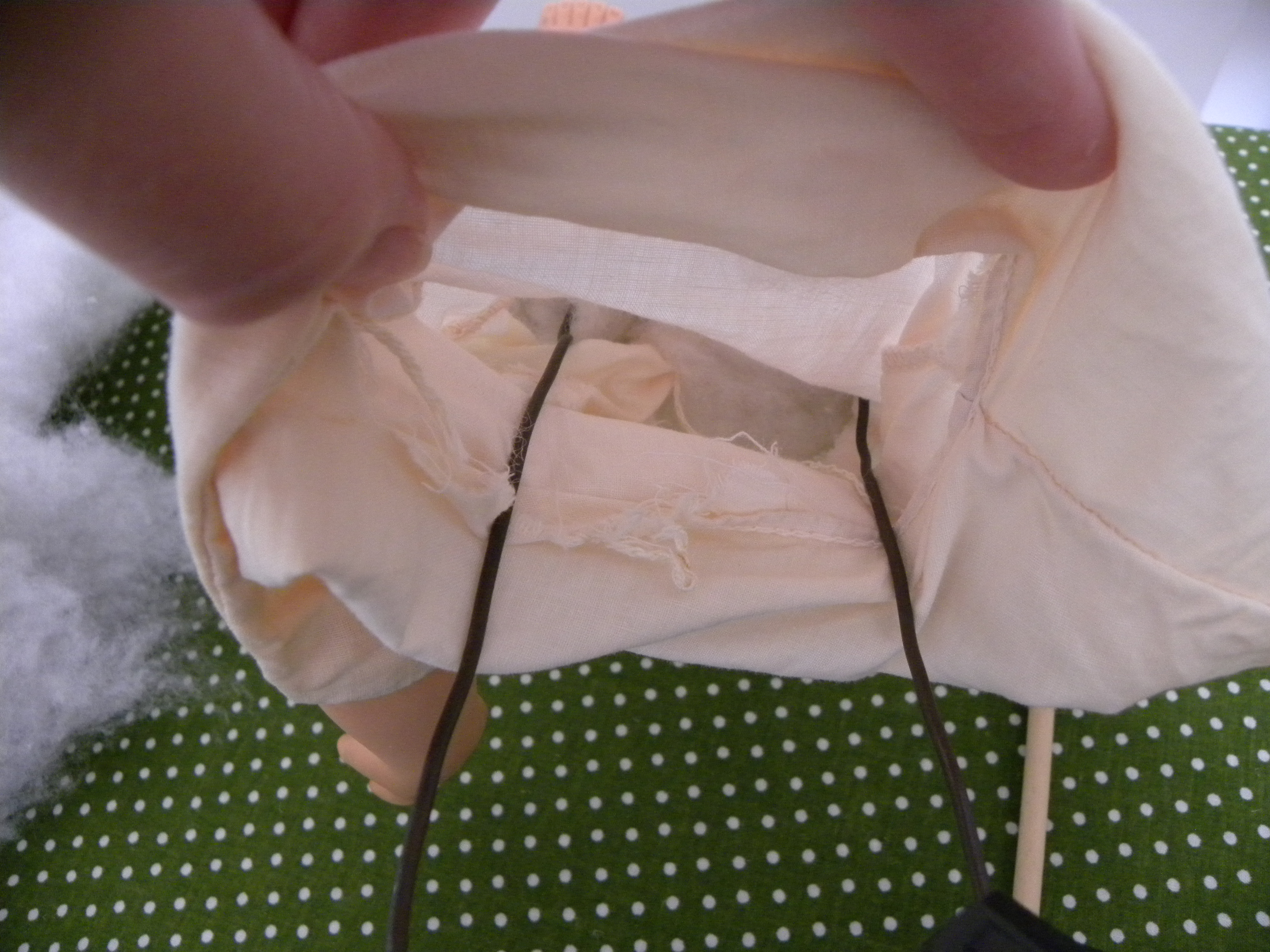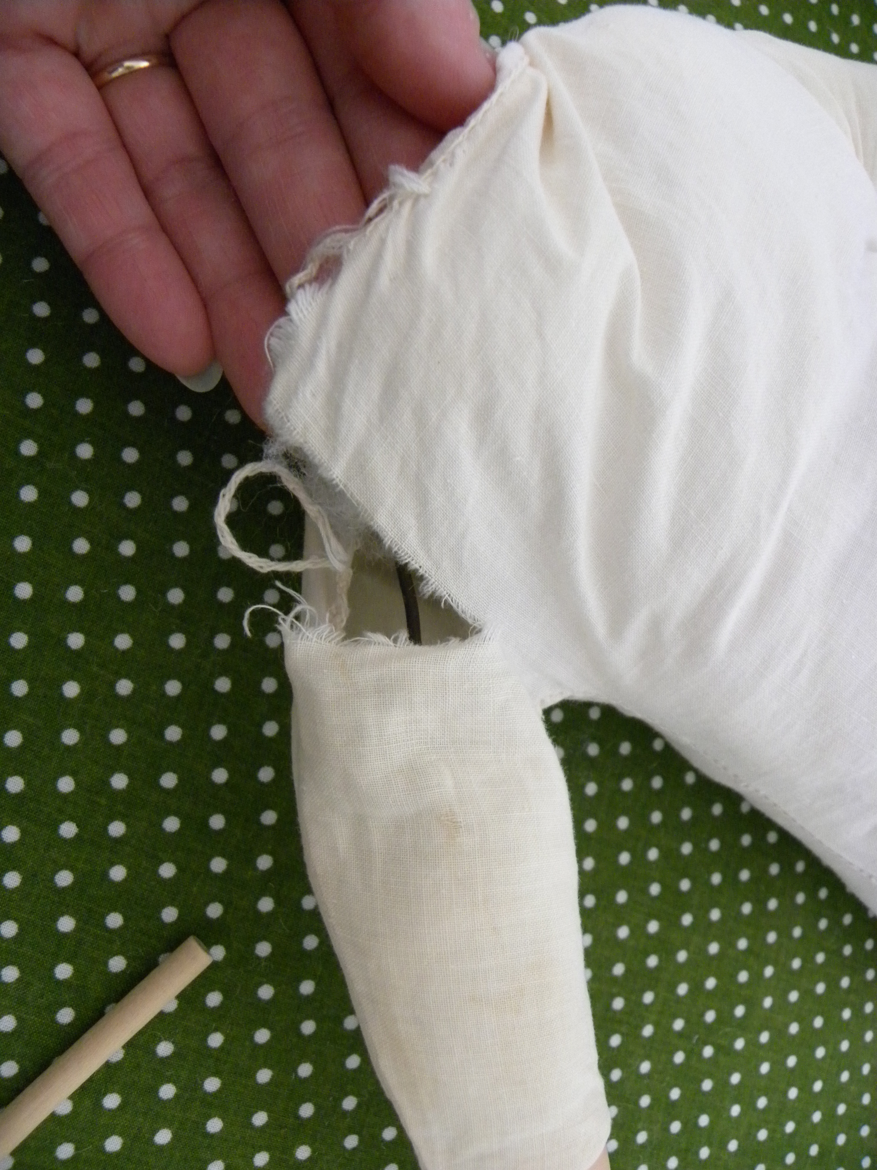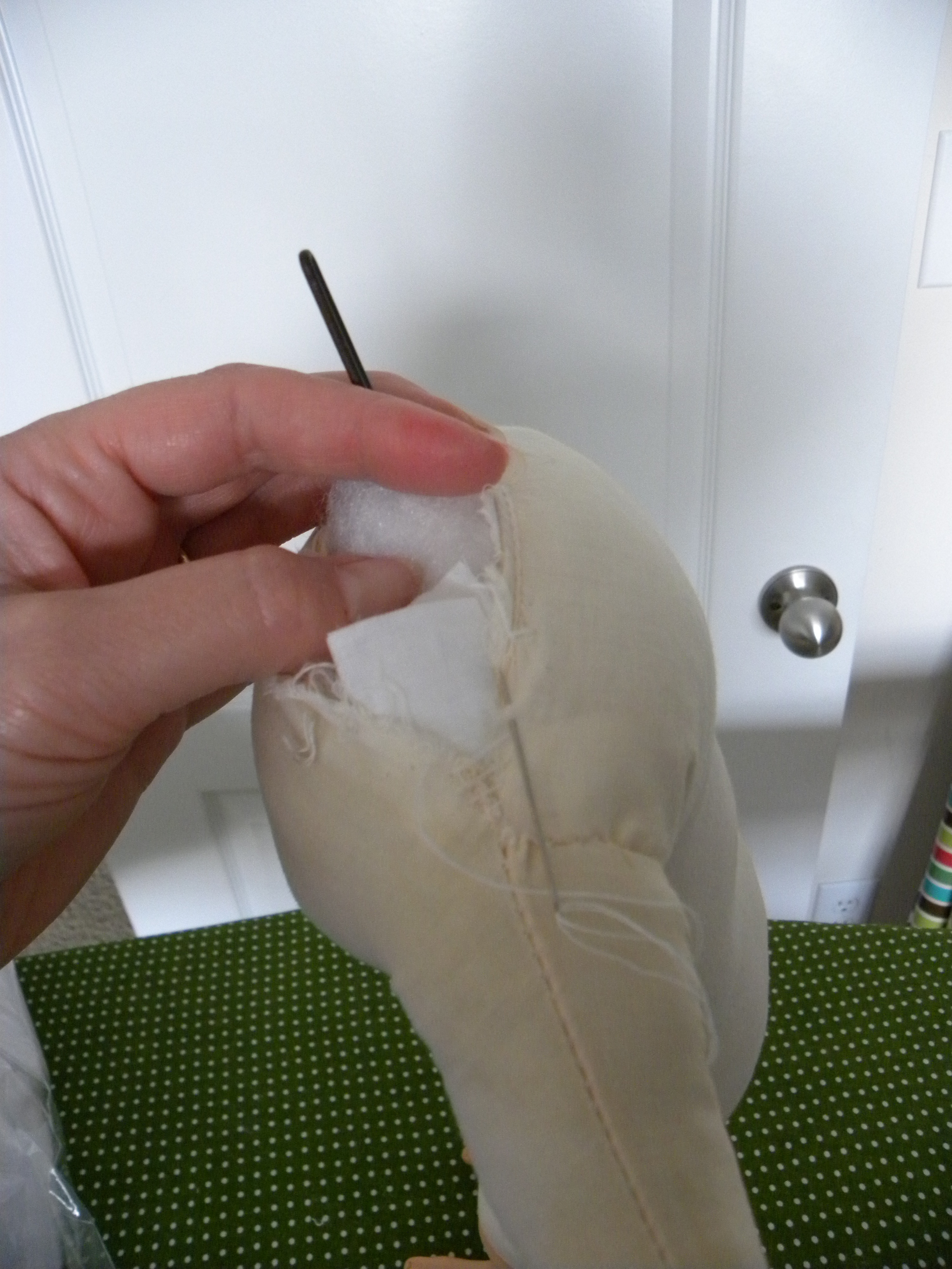 I wrapped a little stuffing around her legs before inserting them into her cloth body.