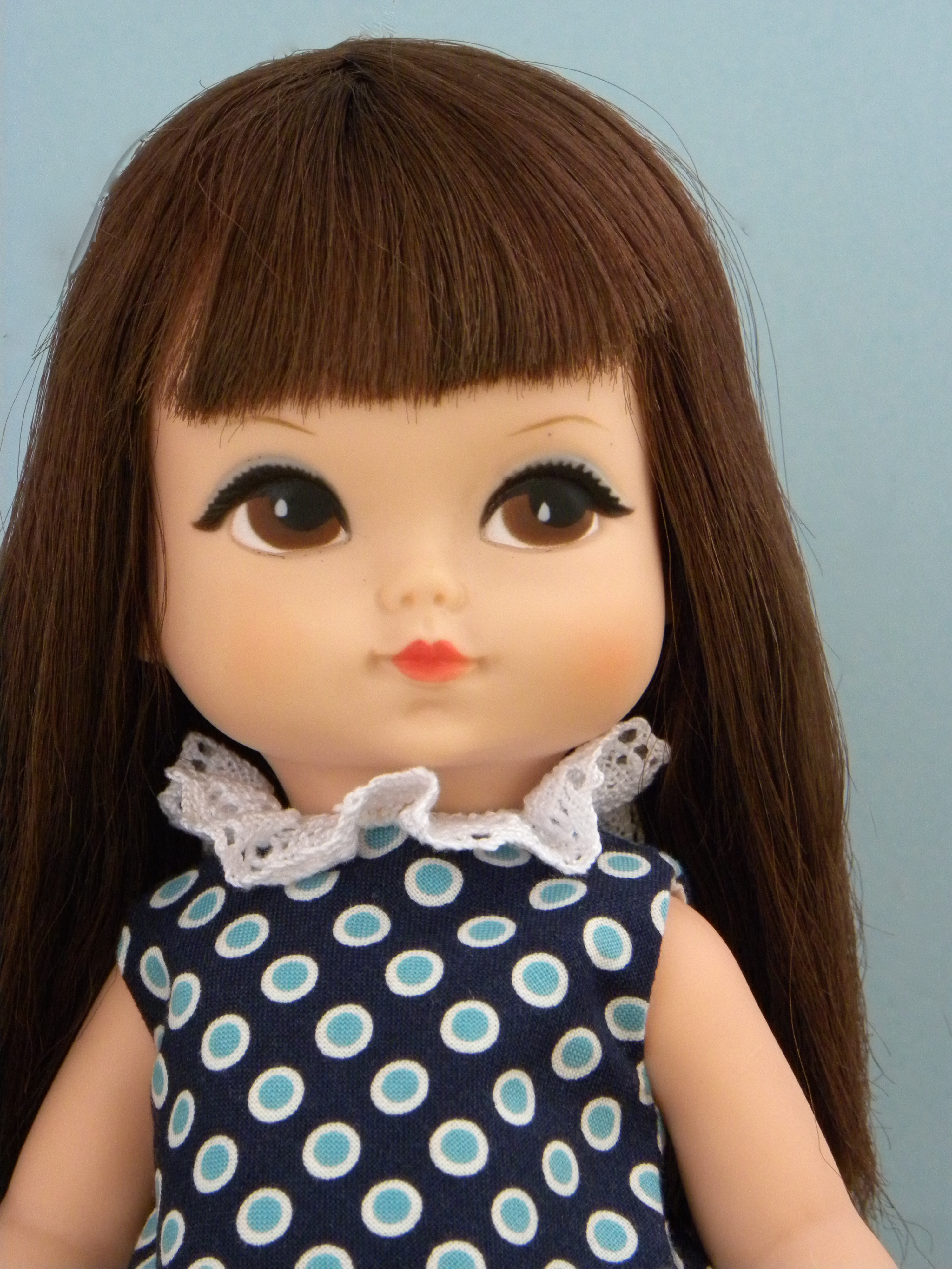 Just thought I’d add a quick close up of the first Little Darling in my collection.  She was painted by Gwen Peard.  She is wearing a pink and orange cotton shift dress.  It definitely has a mod edge to it.  I’d kind of like to make one for me!