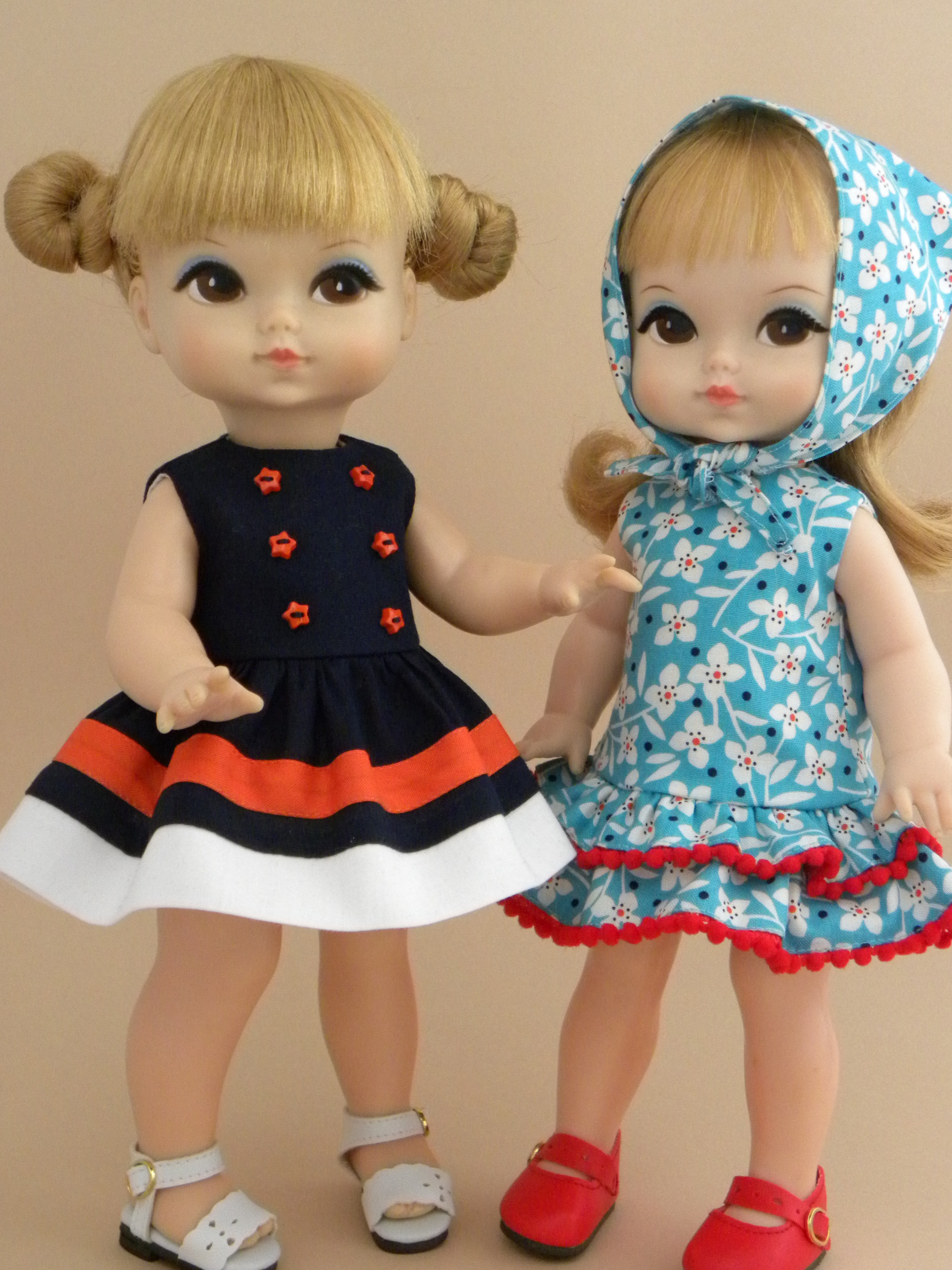 Let me just say, Joy is a lot of fun to dress. A toddler with that much eye makeup makes an interesting model. Anyway, most of these outfits are available at my etsy shop Lemieux Doll Boutique .